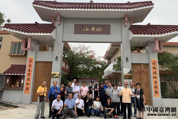 臺南市堪輿學會參訪團在麻涌鎮小英雄少兒粵劇團正門合照。(圖片來源:東莞市臺辦)
