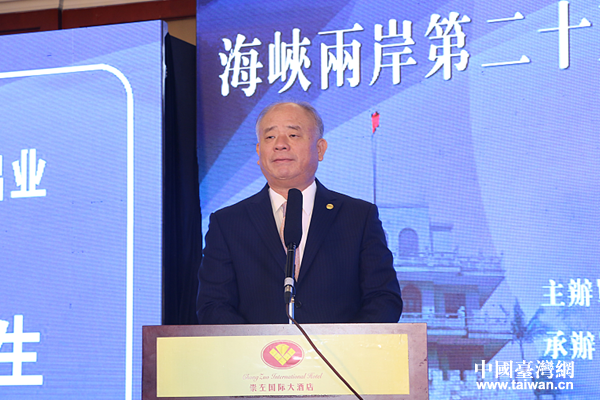 臺灣區照明燈具輸出業同業公會理事長黃明智出席會議并講話。(圖片來源:廣西崇左市臺辦)
