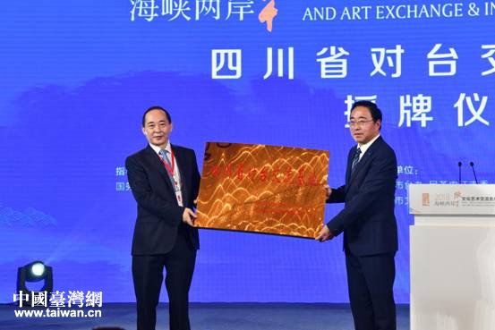 四川省臺辦主任羅治平授牌。(圖片來源:四川省臺辦)