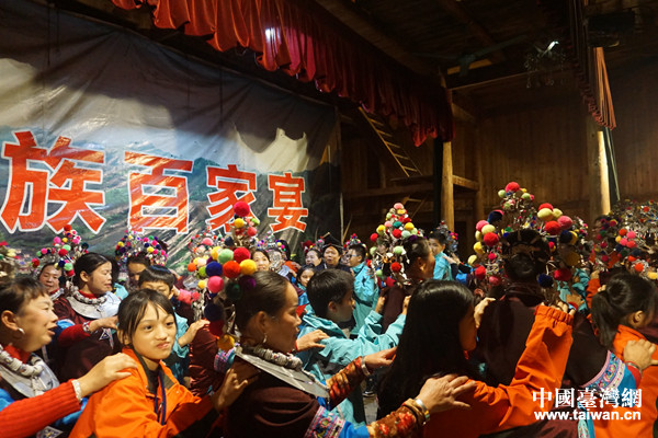 學(xué)校交流活動結(jié)束后,參訪團(tuán)一行驅(qū)車前往三江縣冠洞村寨,考察當(dāng)?shù)氐纳贁?shù)民族風(fēng)貌,游覽具有侗族特色的戲臺、風(fēng)雨橋、鼓樓建筑。嘉里小學(xué)紀(jì)校長表示:“這里是最原始最美的地方!”當(dāng)?shù)氐纳贁?shù)民族居民在大寨前來了一場特殊的歡迎禮,不管男女老少,都身著民族服裝,吹著蘆笙,高唱民歌,迎接遠(yuǎn)道而來的嘉賓。臺灣師生們興高采烈,跟著對起歌謠。兩地師生們圍坐在戲臺觀看蘆笙踩堂、侗家紡織、打油茶等演出,現(xiàn)場響起陣陣熱烈的掌聲。村民們熱情地拿出自家準(zhǔn)備的飯菜,舉辦了一場盛大的百家宴。兩岸同胞相互圍坐在熱氣騰騰的爐火邊,品嘗特色美食,交流各自的鄉(xiāng)情,給暖暖的冬日增添了一份溫情。(中國臺灣網(wǎng)柳州市臺辦通訊員 潘雨茜)