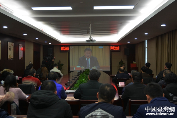 中國(guó)臺(tái)灣網(wǎng)1月4日南昌訊 1月2日上午,《告臺(tái)灣同胞書(shū)》發(fā)表40周年紀(jì)念會(huì)在北京人民大會(huì)堂舉行,江西省臺(tái)辦組織全辦干部職工及在贛臺(tái)商臺(tái)生臺(tái)胞臺(tái)屬代表集中收看紀(jì)念會(huì)直播盛況,認(rèn)真聆聽(tīng)習(xí)近平總書(shū)記發(fā)表重要講話。大家一致認(rèn)為,1979年全國(guó)人大常委會(huì)發(fā)表的《告臺(tái)灣同胞書(shū)》揭開(kāi)了兩岸關(guān)系發(fā)展新的歷史篇章。習(xí)總書(shū)記的重要講話,深刻昭示了兩岸關(guān)系發(fā)展的歷史大勢(shì),科學(xué)回答了在民族復(fù)興新征程中如何推進(jìn)祖國(guó)和平統(tǒng)一的時(shí)代命題,對(duì)江西進(jìn)一步堅(jiān)定信心,扎實(shí)做好對(duì)臺(tái)各項(xiàng)工作,具有重大指導(dǎo)意義。習(xí)總書(shū)記的講話引起省臺(tái)辦干部職工,尤其是臺(tái)商臺(tái)生臺(tái)屬臺(tái)灣省籍同胞代表們的強(qiáng)烈反響。