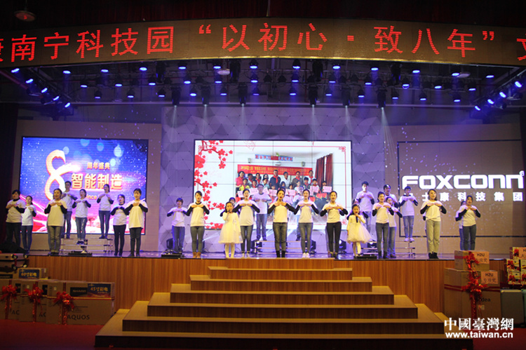 南寧富桂精密工業(yè)有限公司舉辦“以初心,致8年”文藝晚會(huì)暨富士康南寧科技園8周年盛典。(圖片來源:廣西南寧富桂精密工業(yè)有限公司)