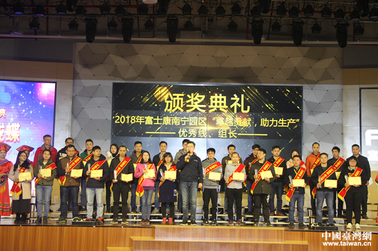 當(dāng)天,晚會(huì)上表彰了優(yōu)秀線、組長(zhǎng),邀請(qǐng)優(yōu)秀組長(zhǎng)代表上臺(tái)談獲獎(jiǎng)感言,公司精心準(zhǔn)備精彩的文藝表演,與職工們共襄盛典。(中國(guó)臺(tái)灣網(wǎng)、南寧市臺(tái)辦、廣西南寧富桂精密工業(yè)有限公司聯(lián)合報(bào)道)