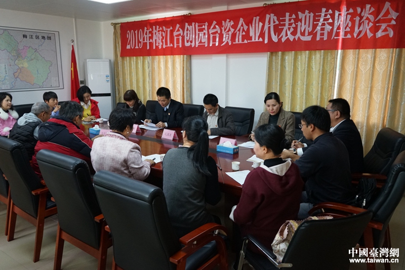 梅江臺創(chuàng)園召開2019年臺資企業(yè)代表迎春座談會。(圖片來源:梅江臺創(chuàng)園管委會)