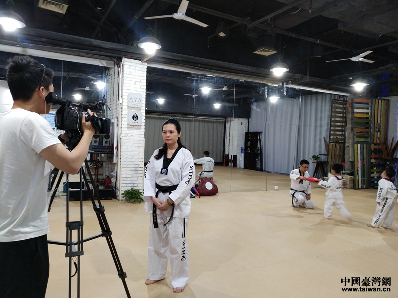 青年臺商黃靖紋接受福建海峽衛視電視專訪。(圖片來源:廣西南寧市臺辦)