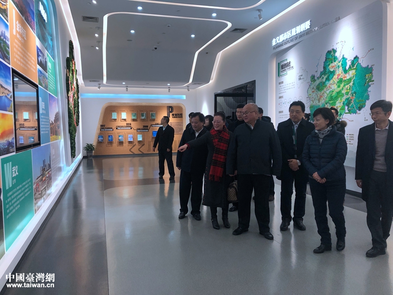 參觀金華城市展示館。(圖片來源:浙江省臺辦)