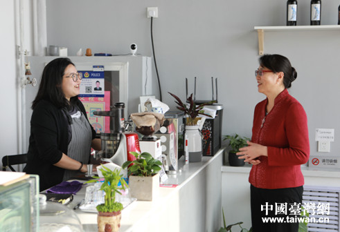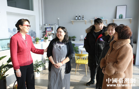 臺(tái)胞潘姵蓉和新疆塔城小伙夏斌通過(guò)網(wǎng)絡(luò)相識(shí)相愛(ài),現(xiàn)在組建了自己的小家庭,小兩口在烏魯木齊市經(jīng)營(yíng)一家西點(diǎn)甜品店。閻梅主任一行來(lái)到他們的小店,詳細(xì)詢(xún)問(wèn)了日常經(jīng)營(yíng)情況,同時(shí)向來(lái)疆創(chuàng)業(yè)發(fā)展的臺(tái)灣青年表示贊揚(yáng),并介紹了相關(guān)政策。鼓勵(lì)小兩口在疆發(fā)展信心,希望踏實(shí)工作,加倍努力,爭(zhēng)取擴(kuò)大經(jīng)營(yíng)。潘姵蓉表示,自己是學(xué)習(xí)烘焙專(zhuān)業(yè)的,手工制作是她的最?lèi)?ài),來(lái)烏魯木齊市居住后,就開(kāi)啟了線(xiàn)上手工蛋糕銷(xiāo)售,客戶(hù)還挺多,經(jīng)常都忙不過(guò)來(lái),去年又開(kāi)了這家西點(diǎn)甜品實(shí)體店,認(rèn)識(shí)了很多新疆朋友,大家對(duì)她都非常友善,讓她感受到了新疆的熱情,也讓她一個(gè)遠(yuǎn)嫁到新疆的臺(tái)灣女孩非常感動(dòng)和欣慰。她稱(chēng),自己也非常喜歡新疆的氣候和飲食,常常向島內(nèi)的親朋好友介紹新疆,邀請(qǐng)他們來(lái)疆走走看看,了解認(rèn)知新疆。今后會(huì)積極參與臺(tái)辦舉辦的各類(lèi)活動(dòng),繼續(xù)腳踏實(shí)地努力工作,爭(zhēng)取更大發(fā)展。