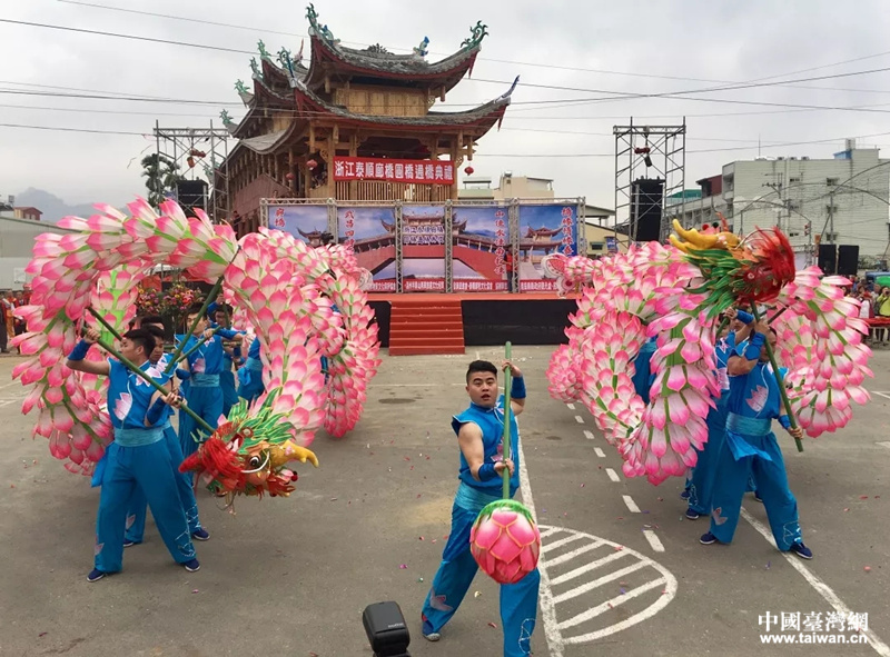 儀式上,“詩畫浙江”燈彩藝術表演團還獻上了精彩的百葉龍、九獅圖、木偶戲等表演。(圖片來源:浙江省臺辦)