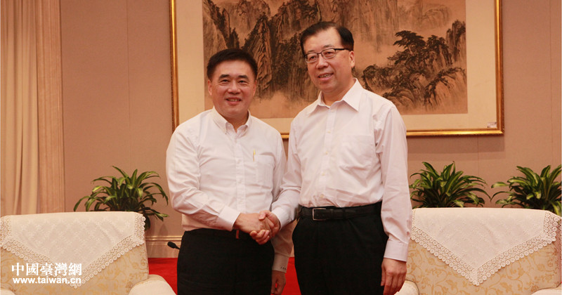 2018年9月1日,青島市委書記張江汀會見中國國民黨副主席郝龍斌一行。(圖片來源:青島市臺辦)