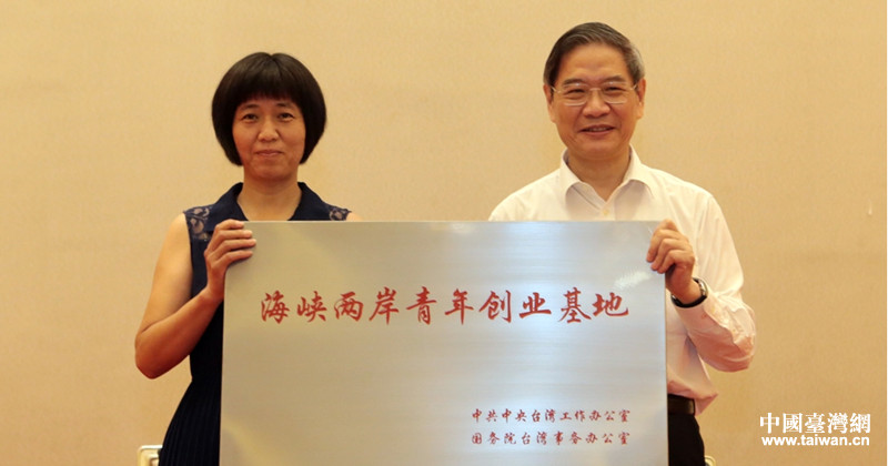 2016年8月18日,時任國臺辦主任張志軍為青島“海峽兩岸青年創業基地”授牌。(圖片來源:青島市臺辦)