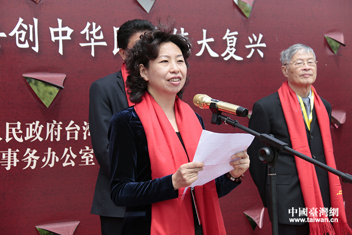 北京市臺聯副會長陳子云在展覽開幕式上致辭。