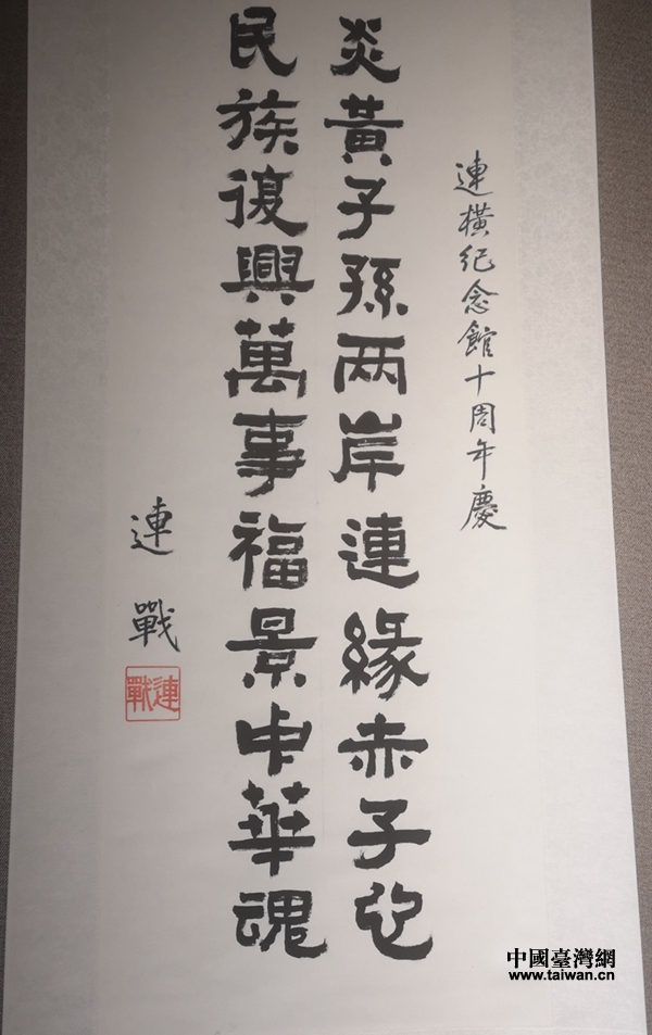 連戰(zhàn)在連橫紀(jì)念館十周年慶上的題辭(圖片來源:杭州市臺辦)