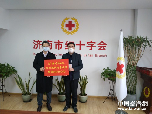 2月4日,濟南市臺協會會長陳世偉代表住濟臺商臺胞親手將愛心款送到濟南市紅十字會。(圖片來源:山東省臺港澳辦)