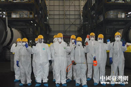 公司車間員工向疫情宣戰。 (中國臺灣網 發)