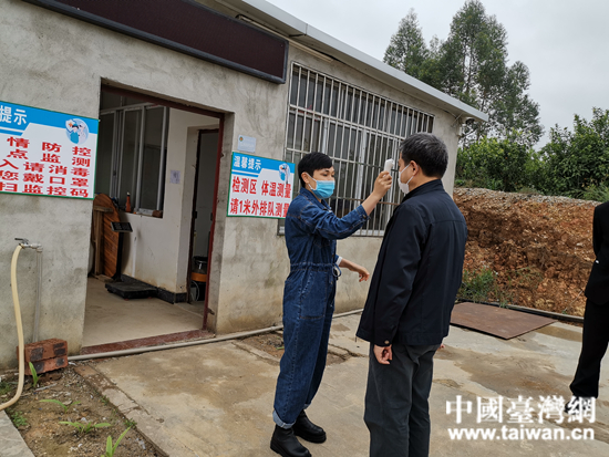 金立泰生態畜牧養殖場對進出人員進行體溫檢測。 (中國臺灣網 發)