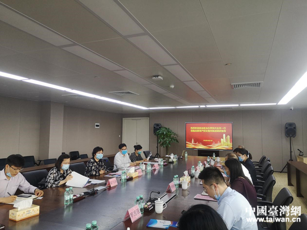 李東興(左中)與北部灣產權交易所集團進行座談交流。 (中國臺灣網 發)