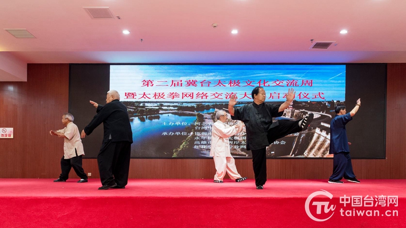 啟動儀式現場,冀臺兩地太極拳傳人進行了現場連線活動。臺灣高雄市海峽兩岸太極拳交流協會理事長黃文佑、屏東縣太極拳委員會主任委員劉玉霞等近10位臺灣太極拳界代表,6家臺灣太極拳協會20余位臺灣太極拳愛好者通過視頻祝賀本屆活動圓滿成功。永年當地太極拳傳承人和青少年學生現場展示了傳統楊氏、武式太極拳和太極器械套路。