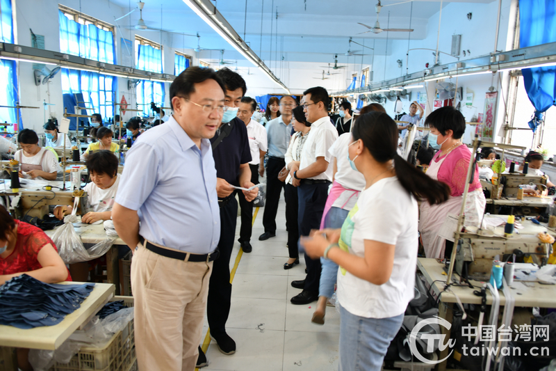 考察濟寧德霖手套制品有限公司(圖片來源:山東省委臺港澳辦)