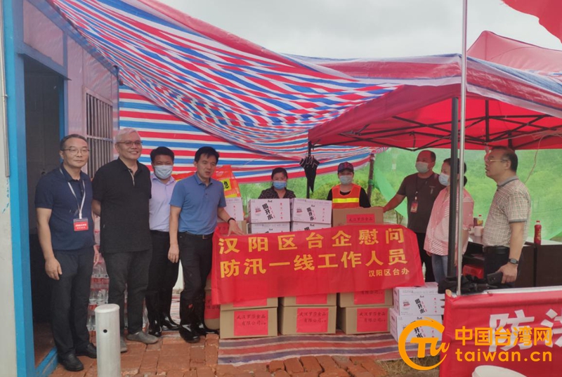 中國臺灣網7月16日訊 7月15日上午,武漢市漢陽區臺辦同轄區臺企羅莎食品一道,看望慰問永豐街4號值守點(磨山集團、磨山社區防汛哨棚)防汛值守人員,捐贈面包、蛋糕、礦泉水等愛心物資300余份,向大家表示敬意和慰問。