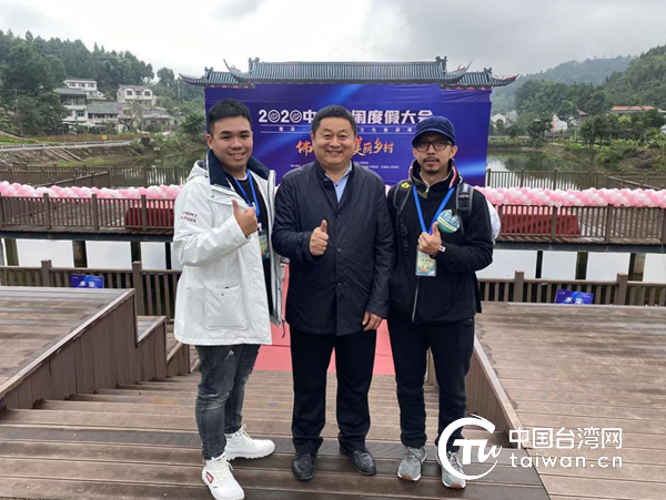在四川巴中市光霧山創作vlog。(圖片來源:四川省臺辦供圖)