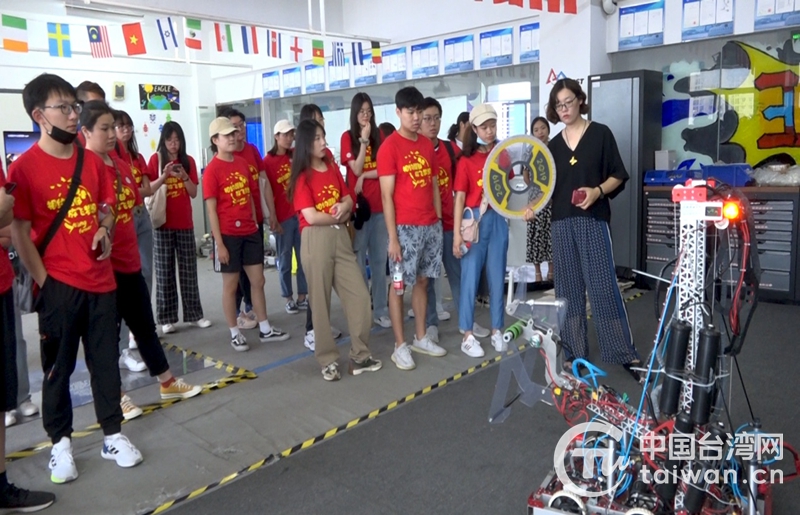 臺灣大學生進高校參觀機器人表演(圖片來源:鎮江市臺辦)