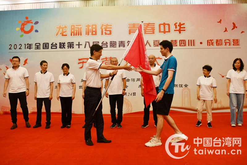 中國臺灣網7月26日訊 7月24日上午,由全國臺聯主辦,四川省臺灣同胞聯誼會、成都市臺灣同胞聯誼會承辦的“龍脈相傳 青春中華”2021年全國臺聯第十八屆臺胞青年千人夏令營四川·成都分營正式開營。四川省臺聯會長劉琪向營員代表授夏令營營旗。