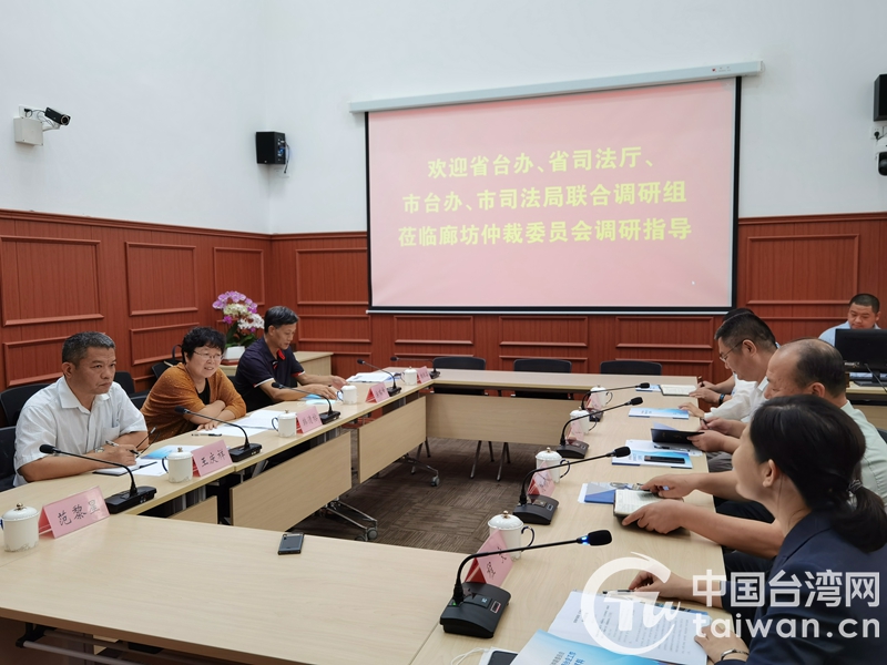 中國臺灣網(wǎng)8月3日訊 近日,河北省委臺辦副主任韓清榕帶領(lǐng)省委臺辦、省司法廳人員組成聯(lián)合調(diào)研組,到廊坊市臺資企業(yè)、仲裁委員會等進(jìn)行調(diào)研走訪,并就涉臺經(jīng)濟(jì)糾紛進(jìn)行督導(dǎo)。