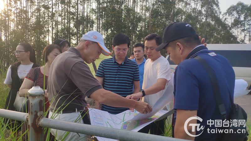 吳勝豐(前排左一)率團(tuán)到賀州市考察,進(jìn)行項(xiàng)目選址(圖片來源:廣西臺(tái)辦)