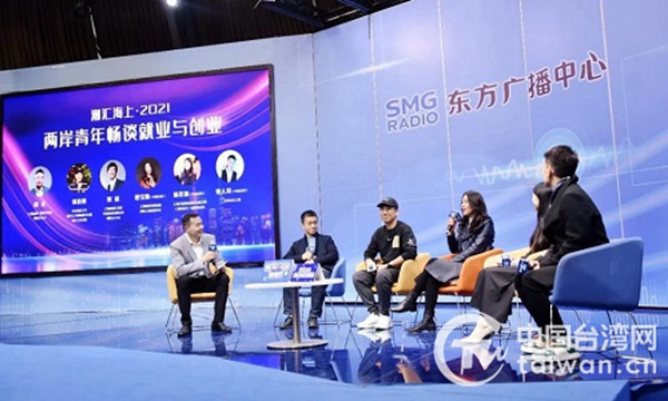 中國(guó)臺(tái)灣網(wǎng)12月8日訊 近日,“潮匯海上·2021——行進(jìn)路上的兩岸青年創(chuàng)新創(chuàng)業(yè)者”沙龍?jiān)谏虾H嗣駨V播電臺(tái)廣播大廈多功能演播廳舉行。兩岸青年代表圍繞“就業(yè)”與“創(chuàng)業(yè)”,進(jìn)行了一番熱烈的探討,并分享各自的工作、生活經(jīng)驗(yàn)。