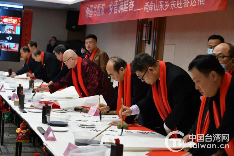 中國臺灣網1月14日訊 金牛俯首辭舊歲,瑞虎騰躍迎新春。1月12日,來自山東濟南與臺灣臺北市、基隆市的鄉親們在“云端”歡聚一堂,憶鄉愁、敘鄉情、話發展,共同舉辦“翰墨書香濃,鄉音滿庭春”兩岸山東鄉親迎春送福活動。