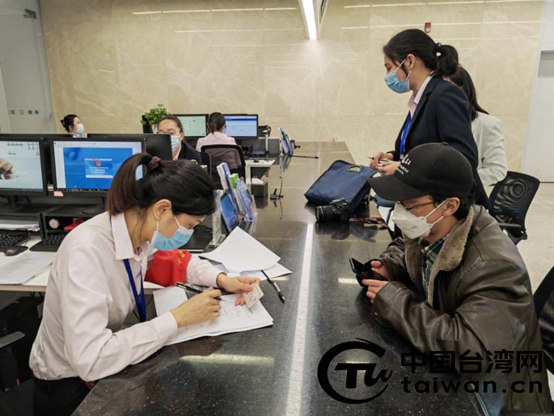工作人員為臺胞李先生辦理相關(guān)手續(xù)(圖片來源:武漢市江漢區(qū)臺辦)