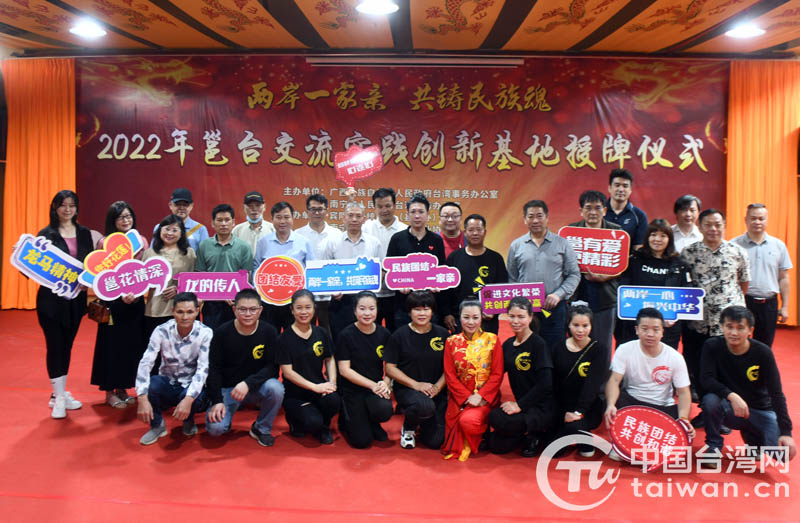 中國臺灣網5月26日訊 5月25日,邕臺交流實踐創新基地授牌儀式暨“兩岸一家親 共鑄民族魂”座談會在廣西南寧市賓陽縣萬興炮龍文化園內舉行,廣西臺辦、南寧市臺辦、南寧市賓陽縣臺辦相關負責人和南寧市臺商、臺青、臺師代表參與本次活動。