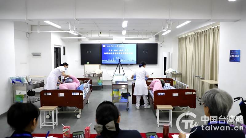 中國臺(tái)灣網(wǎng)7月27日訊 近日,2022浙江·臺(tái)灣周溫州專場(chǎng)系列活動(dòng)——兩岸養(yǎng)老護(hù)理員技能友誼賽,在浙江省首個(gè)“醫(yī)康養(yǎng)護(hù)教”五位一體康養(yǎng)綜合體——浙江東方職業(yè)技術(shù)學(xué)院金竹校區(qū)開賽,來自臺(tái)灣康芮嘉養(yǎng)、臺(tái)灣唯康為老等海峽兩岸的10支康復(fù)醫(yī)院、養(yǎng)老機(jī)構(gòu)、職業(yè)院校技能隊(duì)伍展開友誼交流,同場(chǎng)比武角逐。