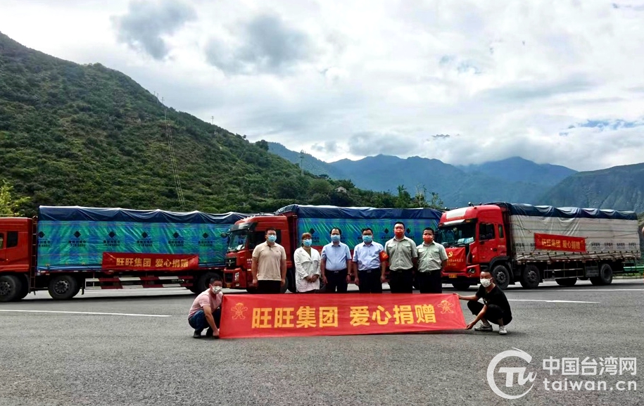 旺旺成都總廠與瀘定縣委縣政府進(jìn)行賑災(zāi)物資交接(圖片來(lái)源:四川省臺(tái)辦)