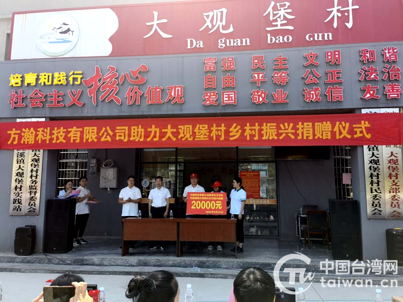 中國臺灣網9月29日訊 近日,湖南省寧遠縣大觀堡村村委會鄉民聚集、掌聲雷動。這個遠離縣城近40公里的邊遠鄉村,正在舉行一場簡樸而隆重的捐贈儀式——臺資企業方翰科技公司為當地鄉村建設及產業振興捐款2萬元。這是該縣“鄉村振興 兩岸同行”續寫新篇的一個縮影。