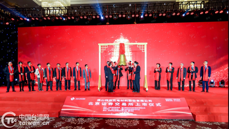 中國臺灣網(wǎng)1月10日訊 日前,佛山緯達光電材料股份有限公司(簡稱“緯達光電”,股票代碼為873001)以“云敲鐘”方式宣布在北交所上市,該公司是第一家由臺商與廣東省屬國有企業(yè)合資設立,并在大陸資本市場成功上市的企業(yè)。