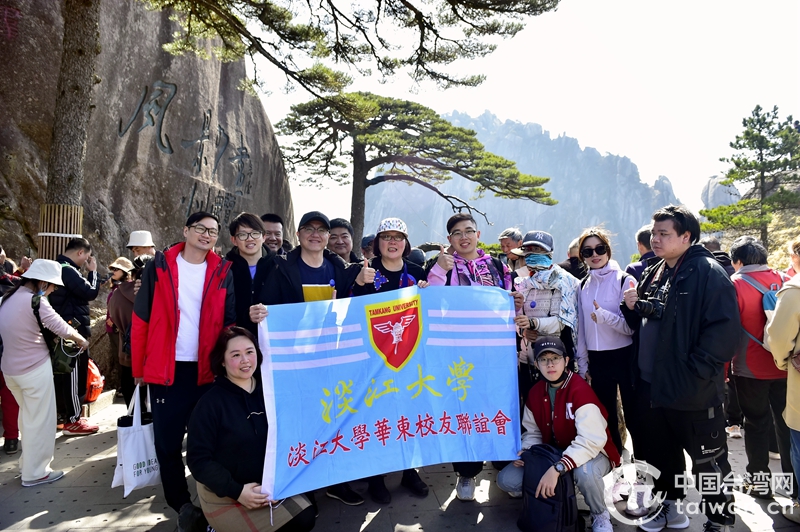 皖臺(tái)青年迎客松前合影留念(圖片來源:黃山兩岸交流基地)