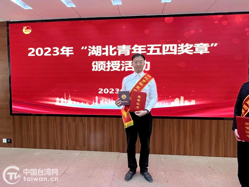 在鄂臺青李方中榮獲2023年“湖北青年五四獎?wù)隆保▓D片來源:湖北省臺辦)