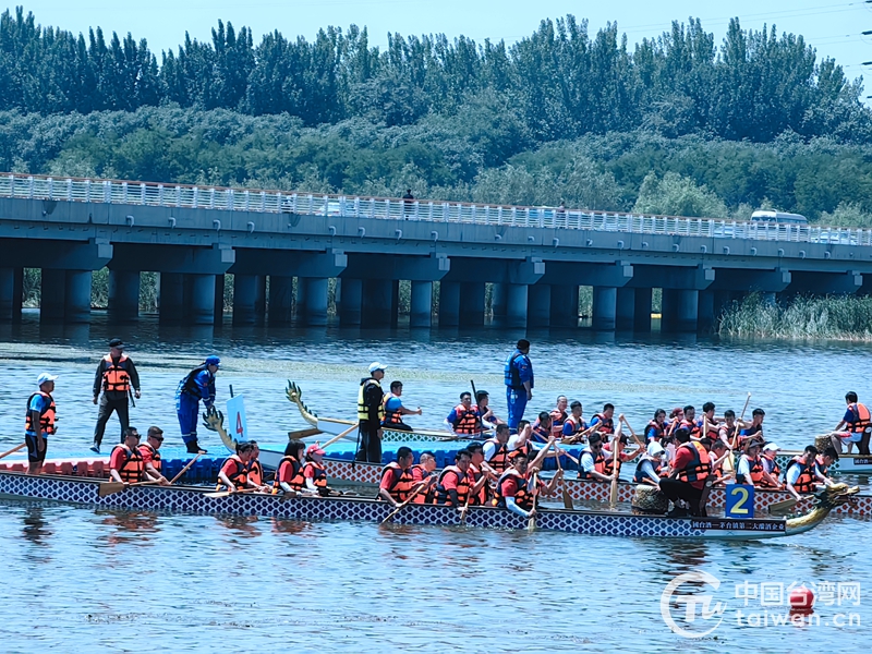 寬闊的潮白河上,隨著鳴笛發令聲響起,各支龍舟隊如離弦之箭,奮楫破浪共迎端午佳節。和平區兩岸青年龍舟隊12名劃手分作兩列,隨著鼓點一齊發力,擊鼓、揮槳、競渡,配合得十分默契。而在岸邊的觀賽區域,和平區臺辦領導與臺胞臺屬為參賽隊員們鼓勁加油。