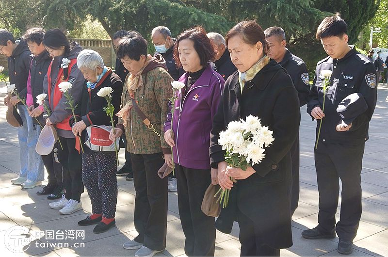 活動現場,臺胞臺屬、黨員等在革命烈士紀念碑前整齊肅立、默哀。(中國臺灣網發)