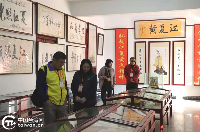 苗栗縣黃氏宗親參觀江夏黃氏大宗祠的陳列館。(中國臺灣網發)
