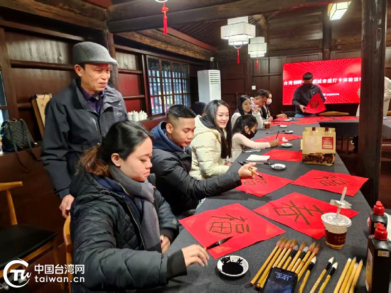 臺灣青年體驗毛筆書法。(中國臺灣網發)