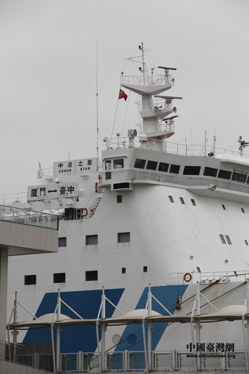 停泊在廈門港的直航臺灣的“中遠之星”大型客滾輪。(中國臺灣網 扶海濤 攝)