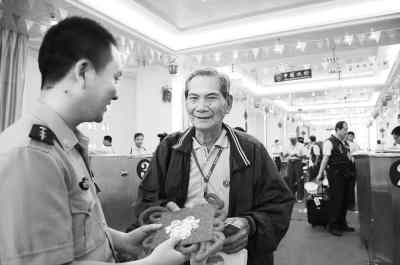 今年是媽祖誕辰1050周年,首個以整船、包船形式赴媽祖故鄉(xiāng)朝圣的臺灣進(jìn)香團(tuán)352名臺胞,6月18日乘坐“海洋拉拉”號客輪從臺灣臺中港出發(fā),于中午1時抵達(dá)福建莆田湄洲島宮下新碼頭。83高齡的臺胞蔡明森是352名旅客中年齡最大的,剛踏進(jìn)驗放通道,他就收到莆田邊防檢查站官兵送上的禮物——中國結(jié)。(吳志 攝)