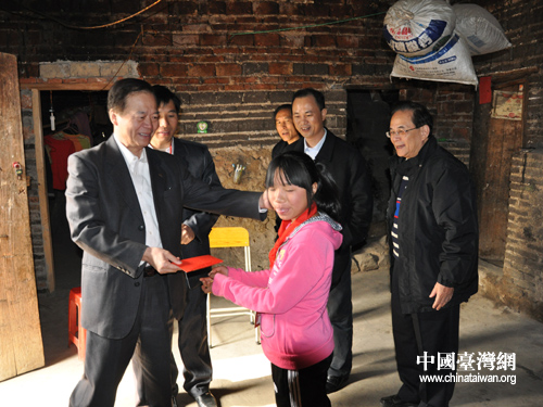 中國臺灣網12月22日清遠消息 日前,經廣東省清遠市臺辦積極牽線搭橋,在佛山辦學經商的臺商黃良華先生積極獻愛心,在清遠市委臺辦主任何久斌的引領下,看望并捐助了連南縣南崗中心學校貧困學生唐三妹。