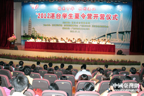 中國(guó)臺(tái)灣網(wǎng)7月11日湛江消息 今日上午,以“情系中華·相約湛江”為主題的2012湛臺(tái)學(xué)生夏令營(yíng)開營(yíng)儀式在廣東省湛江師范學(xué)院隆重舉行。來(lái)自臺(tái)灣臺(tái)中教育大學(xué)、中臺(tái)科技大學(xué)、屏東教育大學(xué)和湛江師范學(xué)院、廣東海洋大學(xué)等300多名師生參加了開營(yíng)儀式。