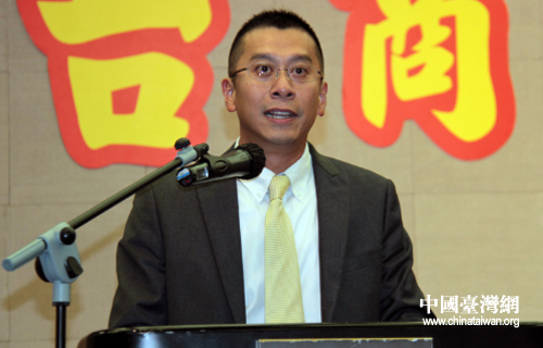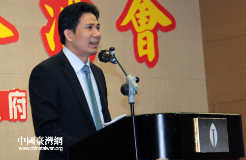湛江市臺(tái)商協(xié)會(huì)會(huì)長(zhǎng)蔡佳霖致辭。(圖片來(lái)源:湛江市臺(tái)辦)