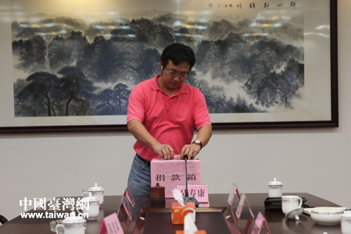 梅州市臺聯會會長、華鼎新維企業董事長洪亮先生捐款。(圖片來源:梅州市臺辦)