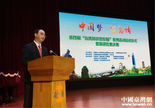 中國臺灣網12月27日河源訊 日前,河源市以“中國夢、寶島情”為主題的第四屆“臺灣知識進校園”系列活動啟動儀式暨演講比賽決賽在河源職業技術學院隆重舉行。市辦主任謝昉柱和河源職業技術學院副校長賴小景出席了活動。