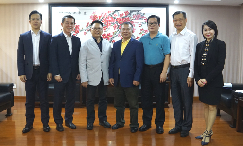 廣東省臺辦主任黃耿城(中)、副主任方濤(右三)與臺灣工商團體秘書長聯誼會秘書長黃章富(左三)、中國信托商業銀行廣州分行行長林福源(左二)一行合影。